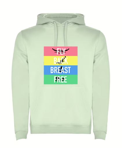 Una prenda que celebra la esencia de la natación con un diseño vibrante. En frente, los cuatro perfectamente alineados muestran los cuatro estilos oficiales